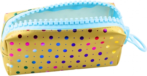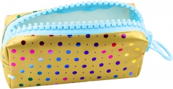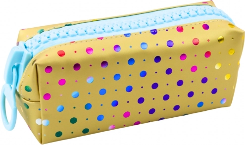 Het schooletui in goud met kleurrijke stippen combineert een modern design met een praktische oplossing voor het opbergen van schoolspullen. Het levendige, vrolijke ontwerp maakt het etui aantrekkelijk voor kinderen en jongeren die originele stijl waarderen.