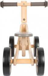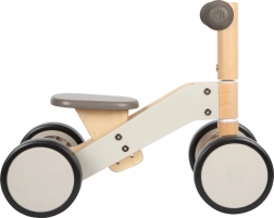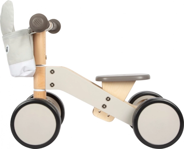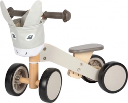 De loopfiets is uitgerust met een verstelbaar zadel (22-25 cm) dat makkelijk meegroeit met je kind. Het praktische, afneembare tasje aan het stuur in ezelontwerp biedt voldoende ruimte voor een drinkfles of een knuffelvriendje. De achterwielen staan dicht bij elkaar, waardoor er ruimte ontstaat voor comfortabel afzetten met de voeten.