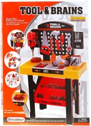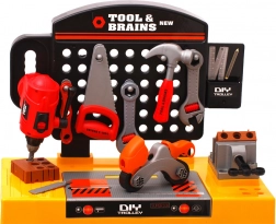 Geweldige set voor kleine klussers die inspireert om de wereld van techniek te ontdekken. In de set vind je naast de werkbank ook een accessoireplank voor het opbergen van al het gereedschap. Het kind kan veilig werken met een hamer, schroevendraaiers, steeksleutel, zaag, bouten en moeren, vijl, boor en andere tools.