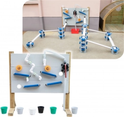 Deze water- en zandset is perfect voor kleine ontdekkers. Het bestaat uit een houten standaard en een breed scala aan accessoires waarmee kinderen hun eigen configuraties kunnen maken. Belangrijkste kenmerken: