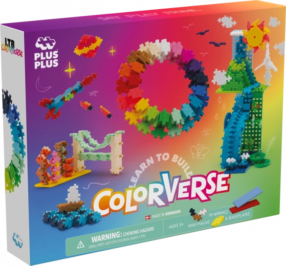 Ontdek een wereld van eindeloos plezier met deze regenboog super set van Plus-Plus. De verpakking bevat 1000 stukken waarmee verschillende constructies kunnen worden gemaakt.