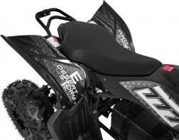 Het ergonomische, waterdichte en zachte zadel (61 × 29 cm) draagt bij aan comfort op langere ritten. Maximale belasting is 85 kg, bodemvrijheid 19 cm en afmetingen van het voertuig 150 × 96 × 89 cm. De ATV wordt geleverd met handleiding en montageset.