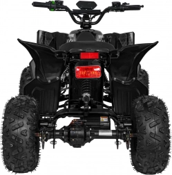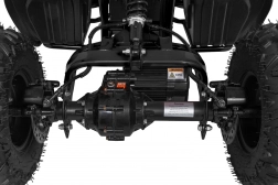 De borstelloze 800 W motor, gevoed door een 48 V / 20 Ah accu, levert soepele kracht, een automatische transmissie (vooruit/achteruit) en eenvoudig starten met een sleutel. Hydraulische schijfremmen voor en achter in combinatie met instelbare vering (2× voor + 1× achter demper) verhogen veiligheid en comfort. Grote banden met grof profiel garanderen tractie in het terrein en LED-verlichting verbetert de zichtbaarheid.