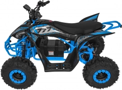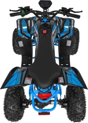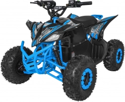De elektrische quad DESERT STORM LIFT is gebouwd op een stevig poedergecoat frame met een versterkte achterbrug en duurzame flexibele kunststof delen. De 800 W borstelloze motor in combinatie met de 48 V 20 Ah accu levert een soepele krachtafgifte en efficiënt energieverbruik. De topsnelheid bedraagt tot 40 km/u, terwijl de automatische transmissie met achteruit (vooruit/achteruit) het bedienen vereenvoudigt.
