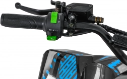 Veiligheid en controle worden gewaarborgd door hydraulische schijfremmen op beide assen en instelbare hydraulische schokdempers voor en achter. Opblaasbare banden met grof profiel in de maat 16x8.0-7 bieden uitstekende tractie en stabiliteit in het terrein. Het overzichtelijke display met snelheidsmeter, tripmeter en batterijniveau-indicator geeft je controle over de rit, terwijl de verlichting met voorste LED-lampen en remlicht de zichtbaarheid verhoogt.