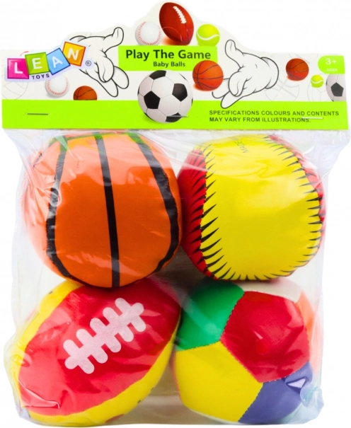 Set van 4 zachte sportballen voor kinderen, veilig en kleurrijk, bevordert de ontwikkeling van de motoriek.
