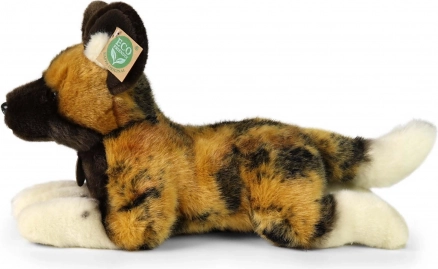 Pluchen Afrikaanse wilde hond 28 cm RAPPA van zacht pluche met eco‑friendly vulling van PET‑flessen. Realistische details, handgemaakt, veilig vanaf 0+.