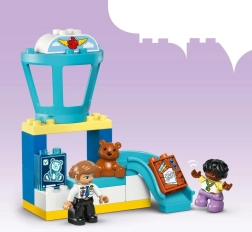 Deze toegankelijke luchthaven-set helpt kinderen omgaan met nieuwe situaties en emoties rond reizen. Met het emotiewiel kunnen ouders met kinderen praten over gevoelens op een drukke luchthaven of tijdens de eerste vlucht. Kleine bouwers oefenen logisch denken en oog-handcoördinatie bij het inpakken van het koffertje met scharnieren, het laten passeren van bagage door de scanner en het plaatsen van de figuren in het rijdende vliegtuig.