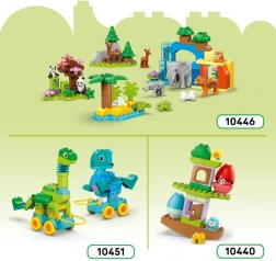 Deze kleurrijke set is ideaal voor peuters en kleuters die van bouwen en dieren houden. Kinderen genieten van eindeloze mogelijkheden – ze kunnen aanbevolen modellen bouwen of hun eigen creaties maken. Dankzij de gemakkelijk vast te pakken DUPLO stenen en de stevige basis op wieltjes is het spel intuïtief en veilig.