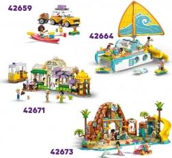 Er is een DJ-station met een draaibare schijf en microfoon zodat het feest volop kan doorgaan, plus zonnebrandcrème, een drankje en ijsjes voor nog gevarieerder rollenspel. Met de LEGO Builder-app kunnen kinderen modellen inzoomen, draaien en de bouwvoortgang volgen.