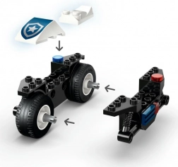 Verras kleine helden vanaf 4 jaar met de actieset LEGO City Politiefiets-achtervolging. Bevat een politiefiets met brede banden, een mini-geldautomaat met bankbiljet, de skateboard van de dief en 2 minifiguren voor uren creatief speelplezier en verhalen verzinnen.