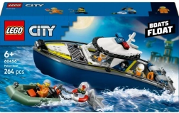 Ga op avontuur met de LEGO CITY politieboot en achtervolg de dief op zee. De set bevat een grote patrouilleboot, een snelle ponton voor de dief, politieminifiguren, een haai en tal van actie-accessoires voor spannende scènes op het water.