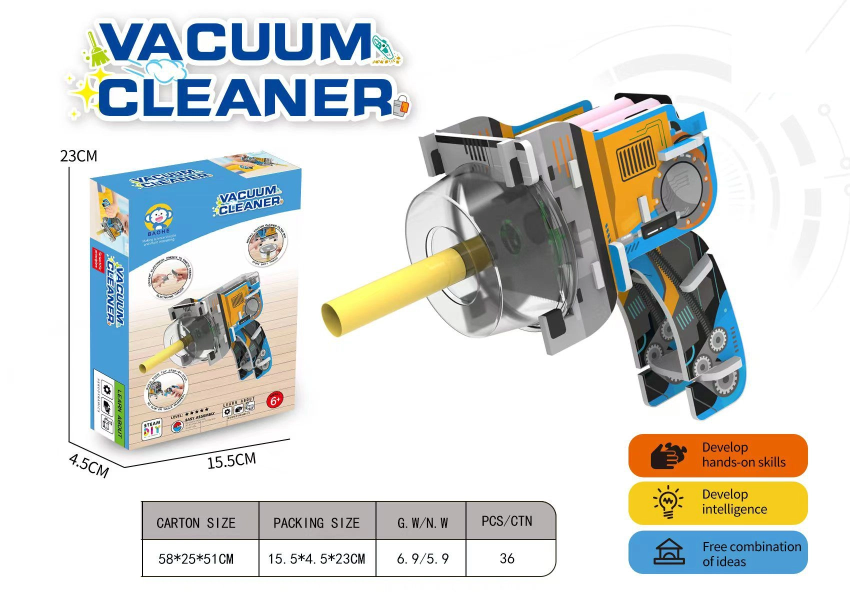 Dit bouwpakket voor een stofzuiger biedt geweldig plezier tijdens het in elkaar zetten en leert kinderen tegelijkertijd de basisprincipes van hoe stofzuigers werken. Perfect voor de ontwikkeling van motorische vaardigheden en technisch denken.