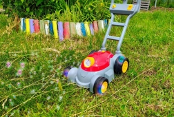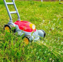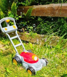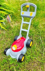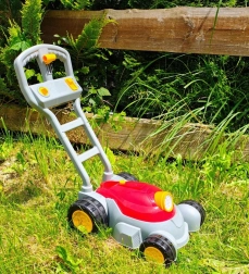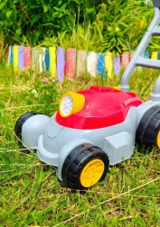 De stevige kunststof handgreep en grote wielen maken duwen door de tuin makkelijk. De lichte constructie is ideaal voor kleine handjes.