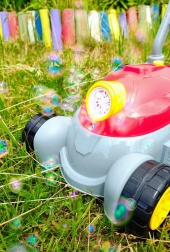 Deze kinder-bellenmaaier biedt twee speelmodi: de eerste zorgt voor ononderbroken bellenblazen, de tweede voegt licht en muziek toe voor nog meer plezier. Schroef de meegeleverde oplossing in het onderste gedeelte, druk op de knop en kijk hoe de voorkant van de “motor” verandert in een bellenshow.