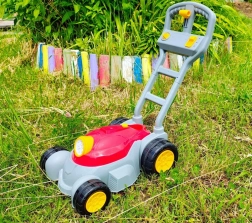 De leuke bellenmaaier tovert elke tuin om tot een magische speelplek. Na het aansluiten van de oplossing en het indrukken van de knop verschijnt er een stroom van magische bellen; bij een tweede druk worden ook licht- en geluidseffecten geactiveerd. Dankzij de stevige kunststof handgreep is hij gemakkelijk te bedienen en ideaal voor kinderen vanaf 3 jaar.
