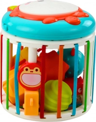 De interactieve kubus is uitgerust met functies zoals een vormensorteerder, drukknoppen, staven om blokken doorheen te duwen en een muziekpaneel met licht- en geluidseffecten. Bovenop bevindt zich een vos met een trommel die bij het indrukken geluid activeert. De kubus speelt verschillende geluiden en melodieën af, die het gehoor van het kind verrijken en tot activiteit aanzetten.