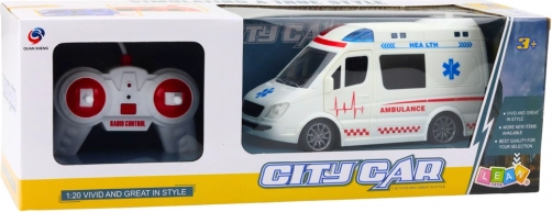 Reddingsambulance met afstandsbediening met lichten en geluiden 1:20 wit