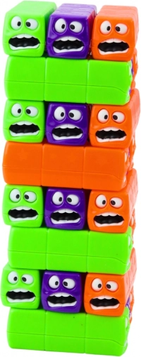 Toren van 24 plastic blokken met ingedrukte gezichtjes van schattige kevertjes in drie opvallende kleuren: groen, oranje en paars. Leuk spel waarbij je de toren stapelt en blokken van onderen uittrekt zonder dat hij omvalt. Eenvoudige regels zorgen voor veel spanning en plezier, ook voor de allerkleinsten.
