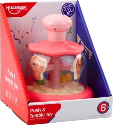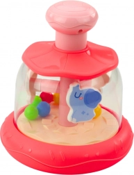 Door op de roze knop bovenop te drukken begint de draaimolen te draaien en de dieren beginnen om hun as te draaien, waardoor een dynamische en kleurrijke draaimolen ontstaat. Dit speelgoed betrekt het zicht, het gehoor en de beweging van het kind, waardoor oog-handcoördinatie en begrip van causaliteit worden ontwikkeld.