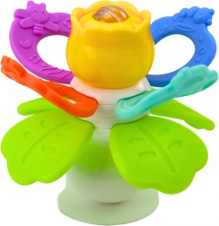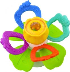 Het draaibare middendeel van de bloem moedigt het kind aan tot activiteit en het versterken van de handen. De kleurrijke blaadjes zijn gemaakt van zacht, elastisch materiaal dat geschikt is om op te bijten – ideaal tijdens de doorkoopperiode. Verrijkt met kleine balletjes in de bloem die zacht rammelen bij beweging, wat zowel het gehoor als het zicht van het kind stimuleert.