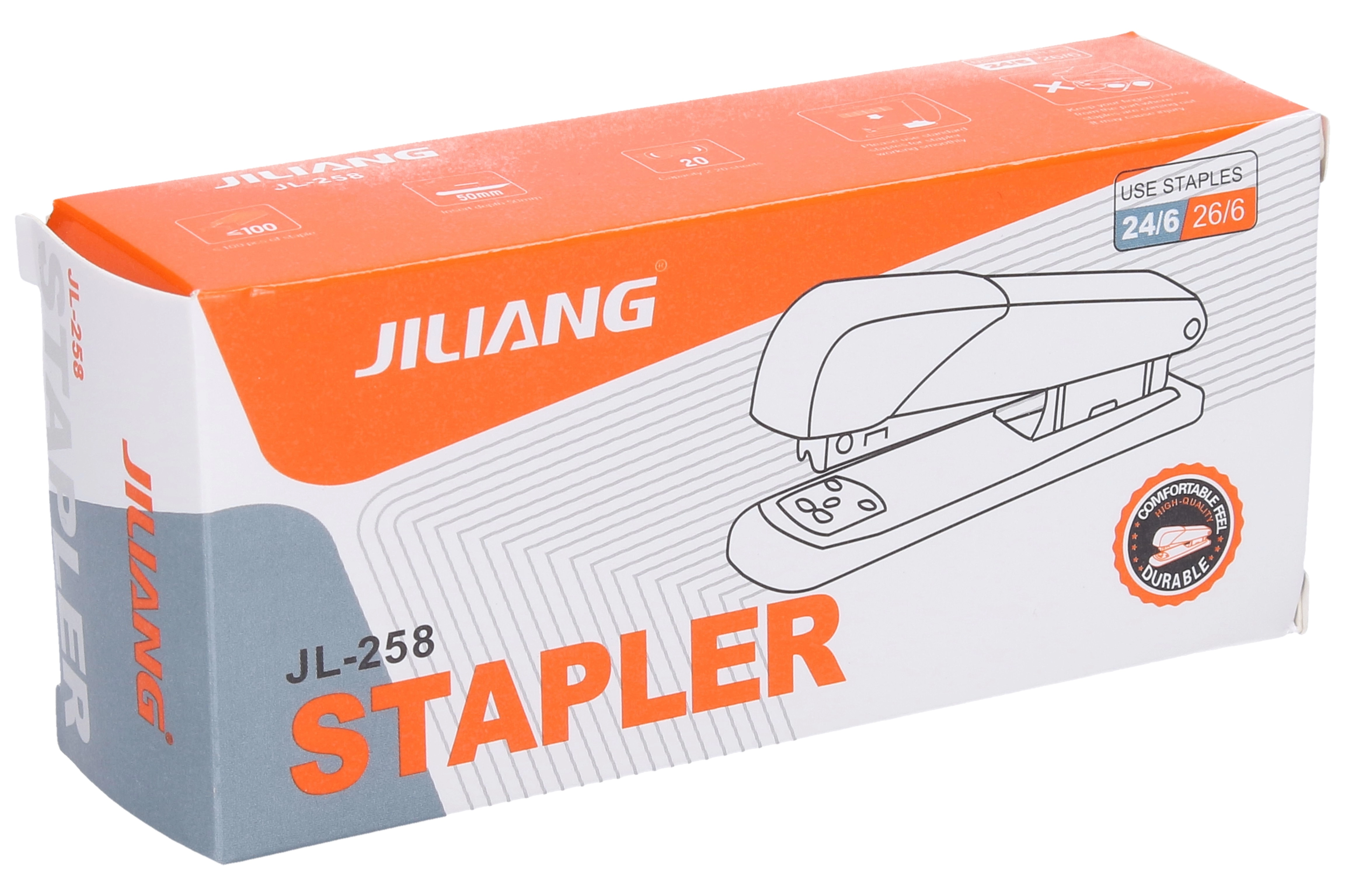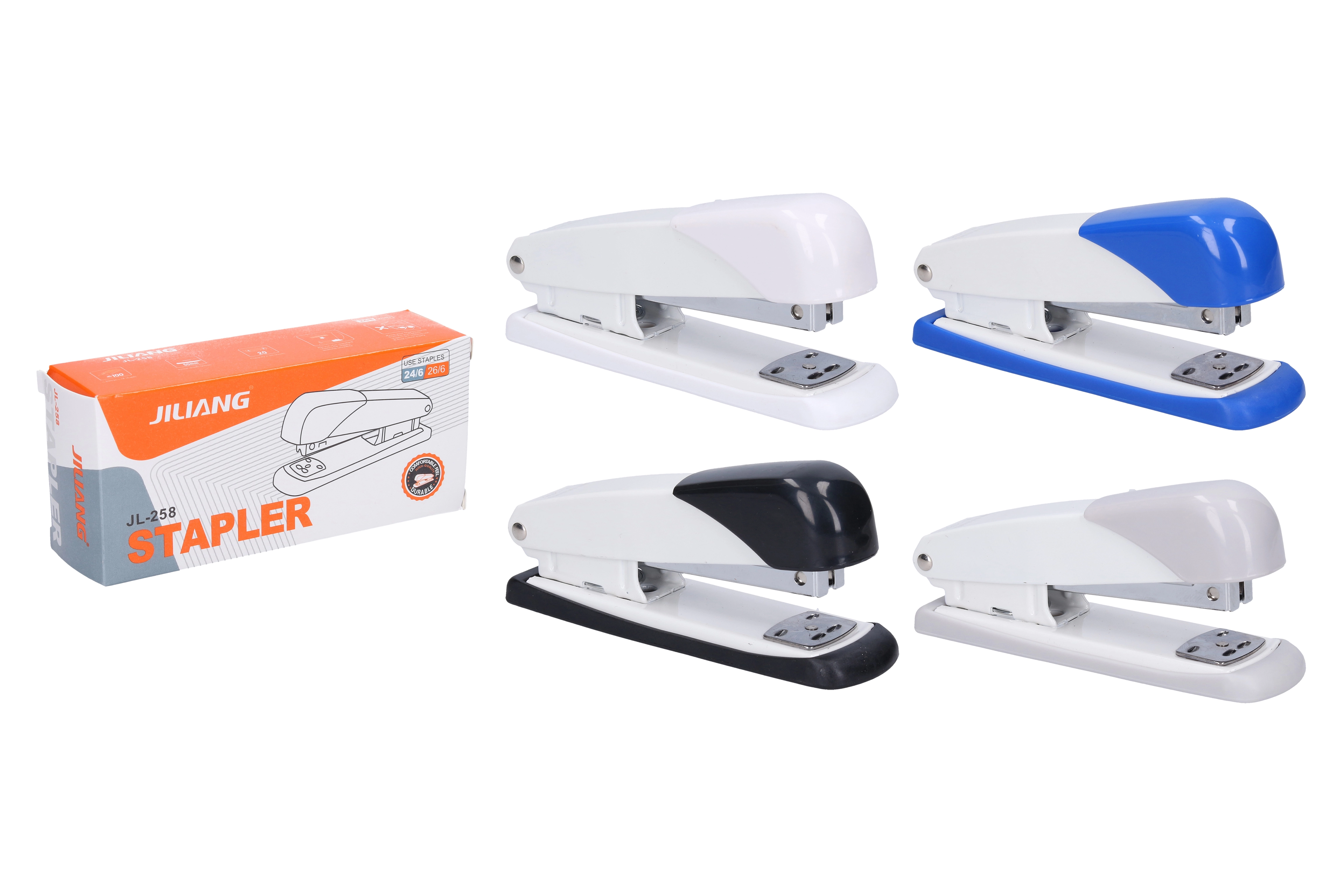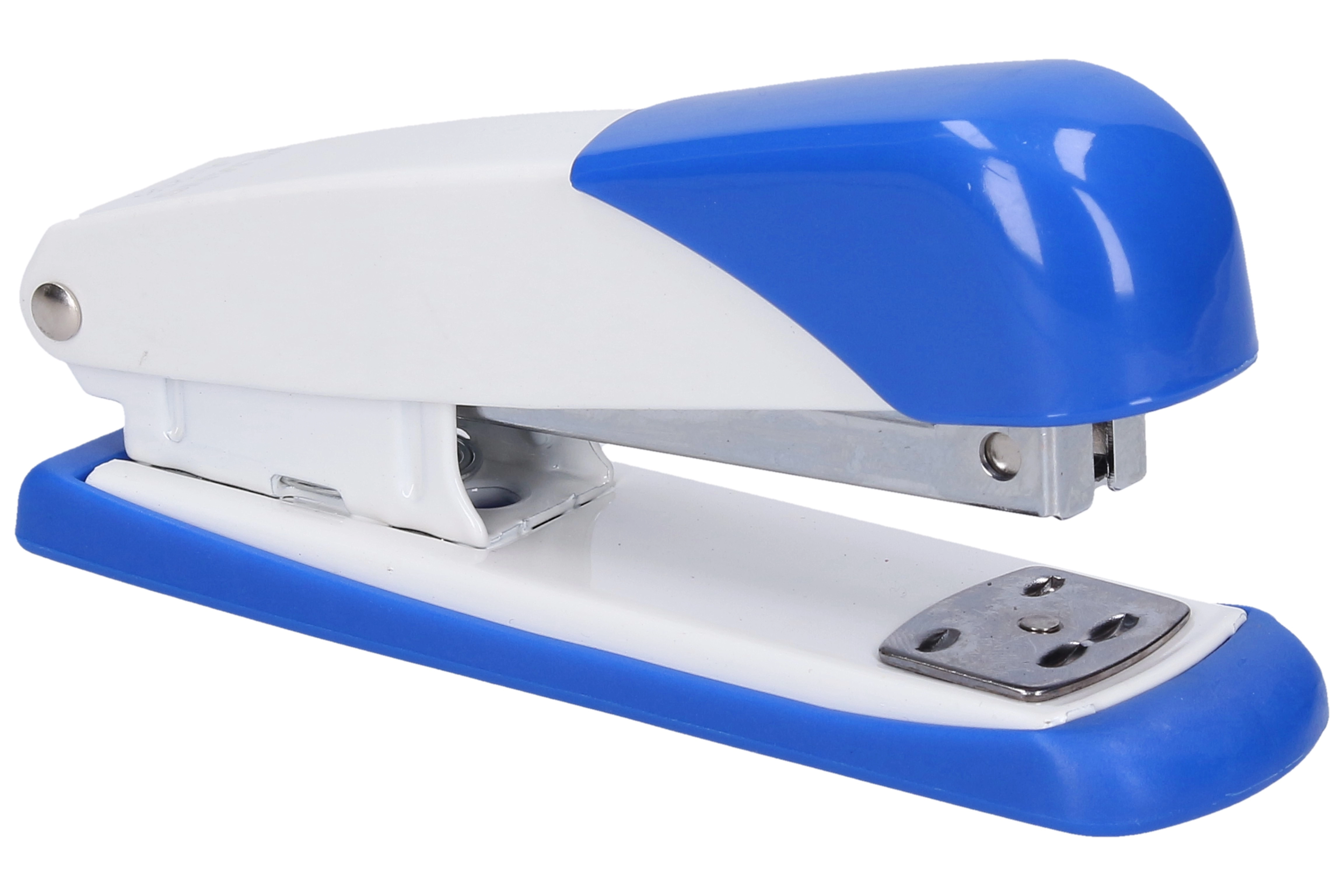 Universele nietmachine beschikbaar in vier kleurvarianten: blauw, grijs, wit en zwart, ideaal voor dagelijks gebruik.