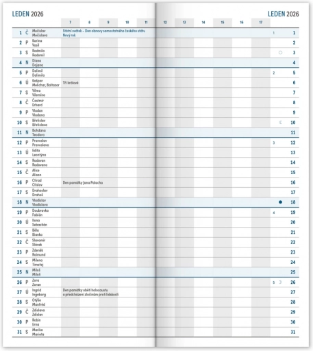 - Tsjechische kalender met namen, feestdagen en gedenkdagen.