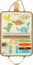 De koffer bevat een whiteboard en educatieve componenten, waarmee kinderen hun kennis kunnen uitbreiden door middel van spel. Er zijn ook vilten dinosaurushouders voor creatief spelen.