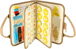 Montessori sensorische koffer met dinosaurussen combineert het plezier van ontdekken met leren. Met gespen, ritsen, knopen en andere onderdelen kunnen kinderen hun vaardigheden op een leuke manier oefenen. Deze compacte en visueel aantrekkelijke koffer is ideaal voor gebruik thuis of onderweg.