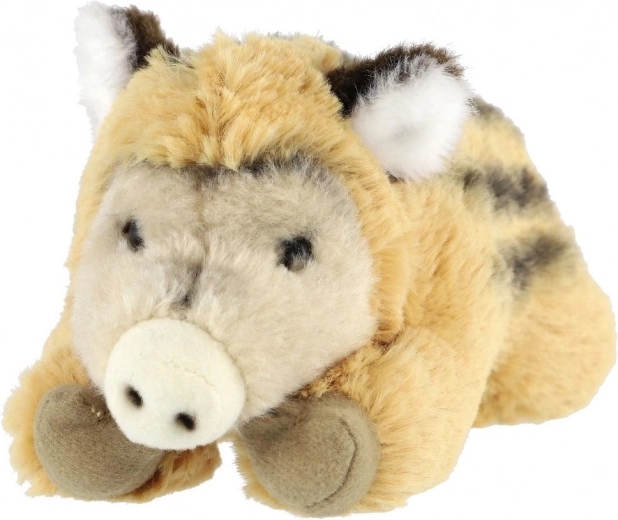De natuurgetrouwe kleuren en strepen van het wilde zwijn biggetje stimuleren de beleving van de natuur en prikkelen de kinderfantasie.