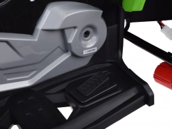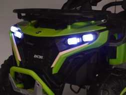 Deze quad wordt aangedreven door 4 motoren 12V 25W en is uitgerust met een 12V 10Ah accu. Daarnaast beschikt hij over lichteffecten, wat de aantrekkingskracht van de rit vergroot. De bediening is eenvoudig met behulp van de afstandsbediening, waarmee ouders controle over de rit hebben.