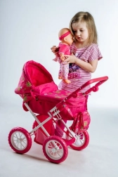 Deze prachtige poppenwagen brengt plezier voor elke kleine mama. Met de opbergruimte onderin heb je alles wat je nodig hebt altijd bij de hand. De stijlvolle tas aan de zijkant van de wagen is ideaal voor speelgoed en andere benodigdheden.