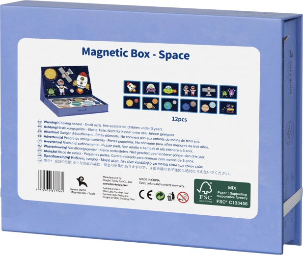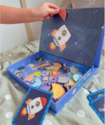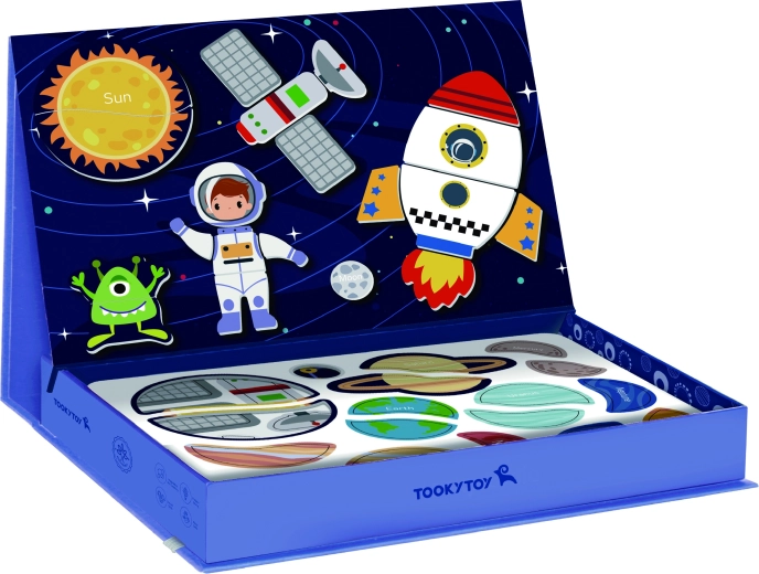 De magnetische puzzel van TOOKY TOY is een fascinerend educatief speelgoed dat kinderen door oneindige werelden van het heelal leidt. De set bevat 12 verschillende ruimtepatronen, elk verdeeld in vier tot vijf magnetische puzzelstukjes. Dankzij de magnetische stickers kunnen kinderen eenvoudig hun eigen ruimtescènes samenstellen op het meegeleverde magnetische bord.