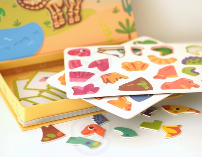 Dankzij de magnetische stickers kunnen de onderdelen eenvoudig op het meegeleverde magnetische bord worden bevestigd, wat de creativiteit en verbeeldingskracht stimuleert. Het is niet alleen leuk, maar ontwikkelt ook de fijne motoriek en oog-handcoördinatie. Een geweldige manier om logisch denken te bevorderen en spelenderwijs iets nieuws te leren over paleontologie.