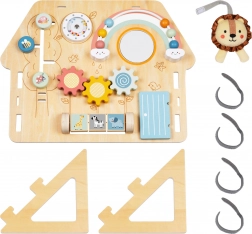 Dit sensorische “busy board” in de vorm van een huisje trekt kinderen aan met favoriete elementen om te draaien, schuiven, klikken en bekijken. Tijdens het spel trainen kinderen grijpreflex, samenwerking van beide handen en geduld, terwijl de kleurrijke details het onderscheiden van vormen en kleuren stimuleren. De duurzame houten afwerking en gladde randen zorgen elke dag voor veilig spel.