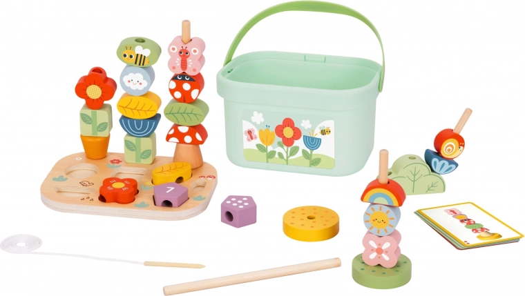 De houten educatieve box Magic Garden brengt kinderen een kleurrijke wereld van bladeren, bloemen en schattige kevertjes. Hij stimuleert fijne motoriek, logisch redeneren en creativiteit dankzij de combinatie van rijgen, sorteren en patronen bouwen volgens activiteitenkaarten. Robuuste houten onderdelen in pasteltinten liggen prettig in de hand en nodigen uit tot herhaald spelen.