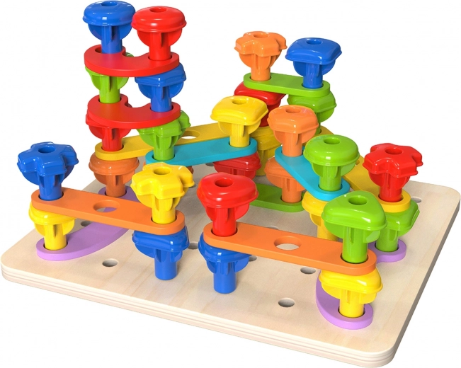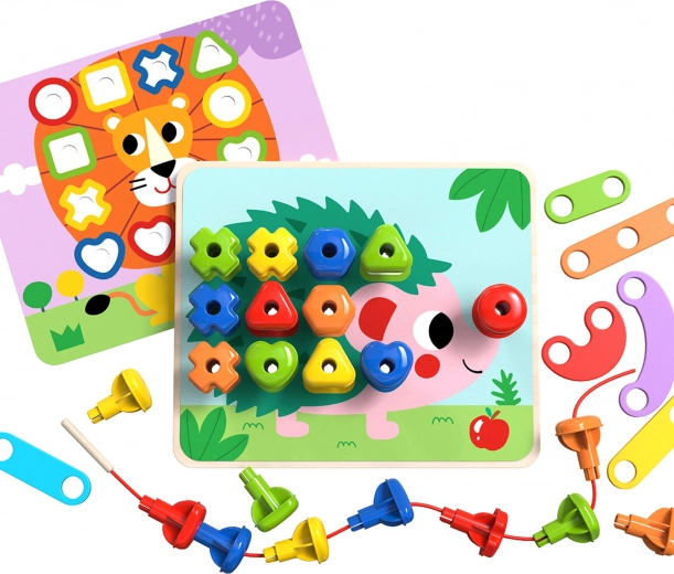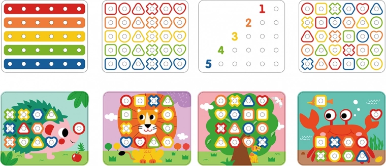 Deze multifunctionele set stelt kinderen in staat verschillende vaardigheden te oefenen. Met de kleurrijke stokjes kunnen verschillende vormen worden gecreëerd en kunnen kleuren worden herkend. De set bevat 30 verschillende stokjes die variëren in vorm en kleur, en 8 kaartjes met verschillende symbolen. Voor kinderen die graag creatief bezig zijn, is er ook een houten naald met koord voor rijgen.