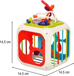 De kleurrijke en interactieve kubus is een centrum voor ontwikkeling en plezier voor uw kleintje. Elke zijde van de kubus biedt andere uitdagingen die de zintuigen stimuleren en verschillende vaardigheden verbeteren. Het kind kan: