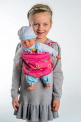 Een schattige stoffen draagzak voor kleine verzorgers waarmee kinderen hun favoriete poppen en knuffelberen comfortabel kunnen dragen. Dankzij het vakformaat van 29 × 20 cm en de verstelbare riemen past hij gemakkelijk aan het kinderlichaam en zorgt hij voor veilig en comfortabel dragen van het speelgoed, zowel thuis als tijdens een wandeling.