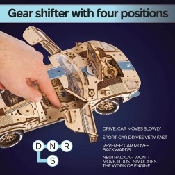 Endurance Racer van Ugears is een tweedeurs sportcoupé ontworpen voor autoliefhebbers. Het model beschikt over realistische racemogelijkheden, zoals een versnellingspook met standen vooruit, achteruit en sport voor extra versnelling. Siliconen banden zorgen voor extra grip en stabiliteit.