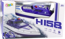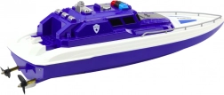 Hier presenteren we een grote politie motorboot op afstandsbediening die eindeloos waterplezier biedt. Dankzij authentieke kleuren en prints geïnspireerd door politiediensten, kruip je in de rol van een eenheid op het water.