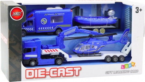 Reddingsvoertuigenset met blauwe politiehelikopter