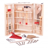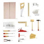 Houten gereedschapskoffer met alles wat een jonge klusser nodig heeft. Bevat schroevendraaiers, zagen, sleutels, hamers en nog veel meer tools. Gemaakt van kwaliteitsmaterialen en voldoet aan de Europese veiligheidsnormen.