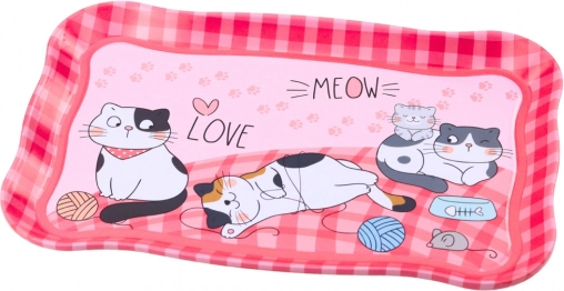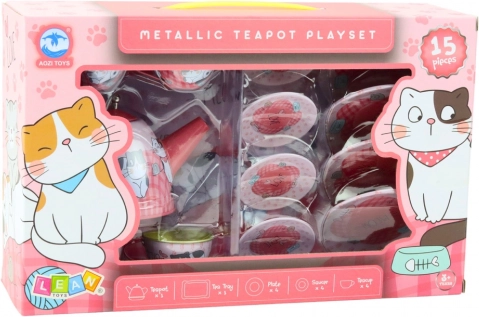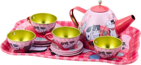 Metalen theeservies voor kinderen met kattenmotief, roze, 15 stuks