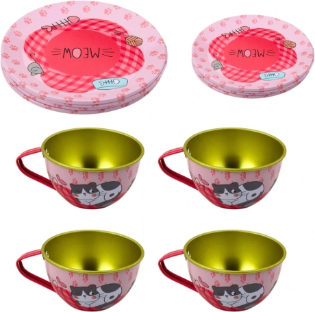 Geef uw kinderen een bijzondere ervaring met rollenspellen in huis en theevisites dankzij dit metalen servies met kattenmotief. De set is ontworpen om de fantasie en sociale vaardigheden van kinderen te stimuleren. Ideaal voor zelfstandig spelen of samen met broers, zussen en vrienden.