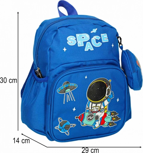 De perfecte rugzak voor kleine astronauten! Deze vrolijke kinderrugzak van het merk Astronaut met afmetingen 30x14x23 cm is ideaal voor alledaagse avonturen op de kleuterschool. Hij biedt voldoende ruimte, is licht van gewicht en gemakkelijk te onderhouden.