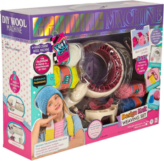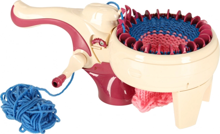 Met de geïntegreerde breimachine kunt u moeiteloos diverse projecten breien, van sjaals tot mutsen. De set bevat alles wat u nodig hebt: 1 breimachine, een stabiliserende basis, een naald en een haak. Het kleurpalet van de garens omvat geel, blauw, wit, paars en roze, wat een brede waaier aan combinaties en designs mogelijk maakt.