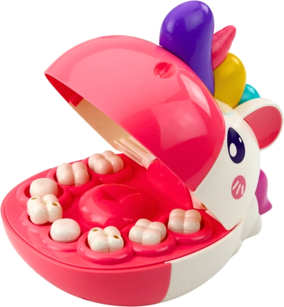 Geweldig educatief speelgoed voor kinderen, dat op een leuke manier de wereld van tandheelkundige zorg dichterbij brengt. De roze eenhoorn met open mond biedt geweldige mogelijkheden voor creatief spel en leren!