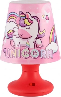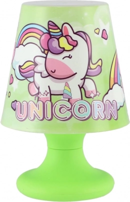 De kap met de tekst “UNICORN” en de stabiele voet zorgen voor veilig gebruik en aangenaam diffuus licht dat de slaap niet verstoort. De praktische tuimelschakelaar in de basis maakt het kinderen gemakkelijk om het lampje aan en uit te zetten.