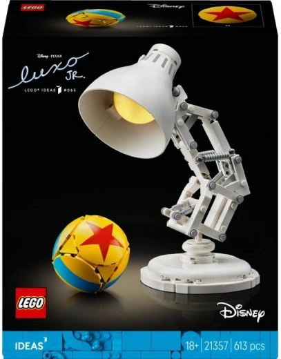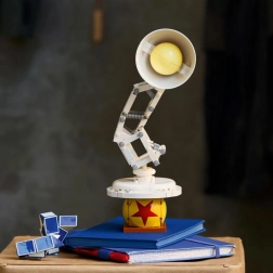 Bouw de stijlvolle LUXO JR.-lamp die beroemd werd in de intro van DISNEY PIXAR. Het model is volledig beweegbaar – het kantelen van de kap, het buigen van de armen en de realistische “veren” maken iconische poses mogelijk, inclusief de sprong op de bal. De set bevat ook de Pixar-bal, die opent en thematische verrassingen onthult, geïnspireerd op films als Up, The Incredibles, Ratatouille, Monsters, Inc., Toy Story en Finding Nemo.